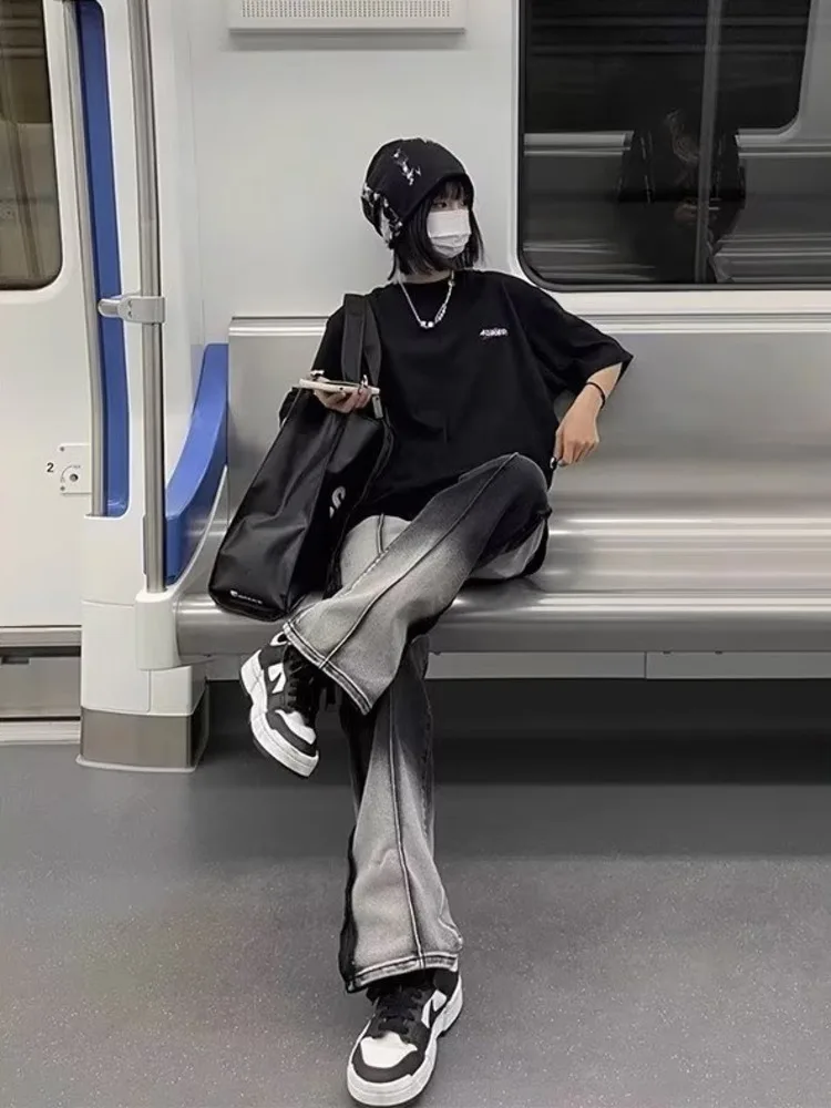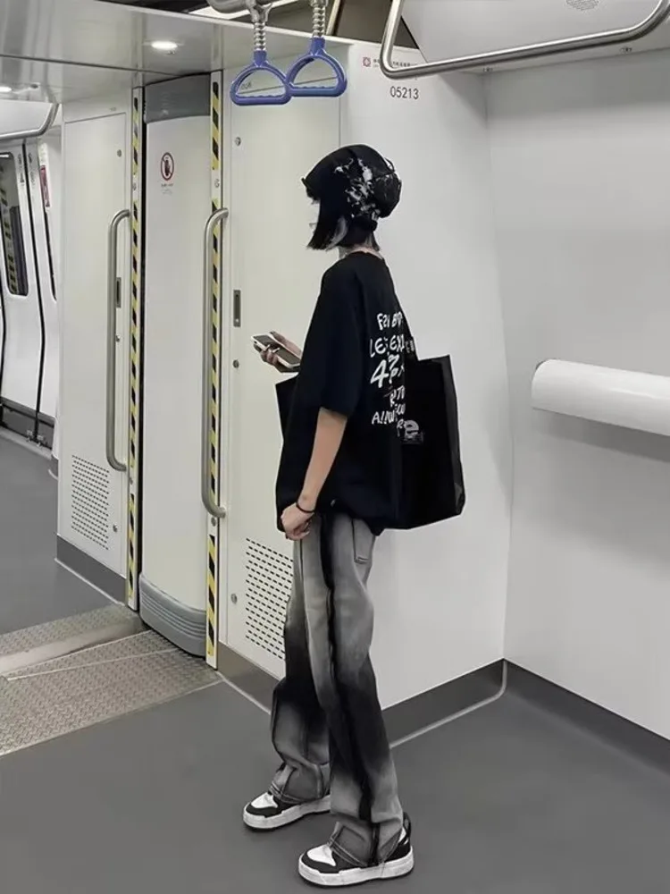 Spliced Jeans With Old Zippers, High Street Insets, Trendy Gradient Straight Tube Loose Wide Leg Pants, Children’s Jeans